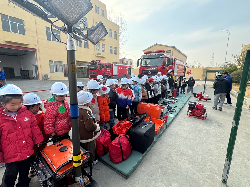 走进公司应急救援队,与队员们进行了一次“零距离”接触。高大的消防车、整齐划一的救援器材、还有身穿帅气制服的队员叔叔们,都让小朋友们兴奋不已。