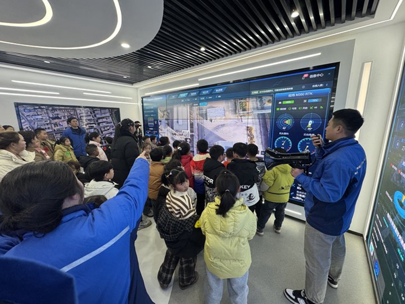 在公司展厅,小朋友们体验了一场科技与工业融合的盛宴——无人机智能巡检。灵活的无人机在公司厂区上方盘旋,就像来自未来的神奇伙伴,引得小朋友们不时发出阵阵惊叹,不仅为大家的科学梦想添上了一抹亮色,更感受到了公司在数字化发展道路上的创新成果。
