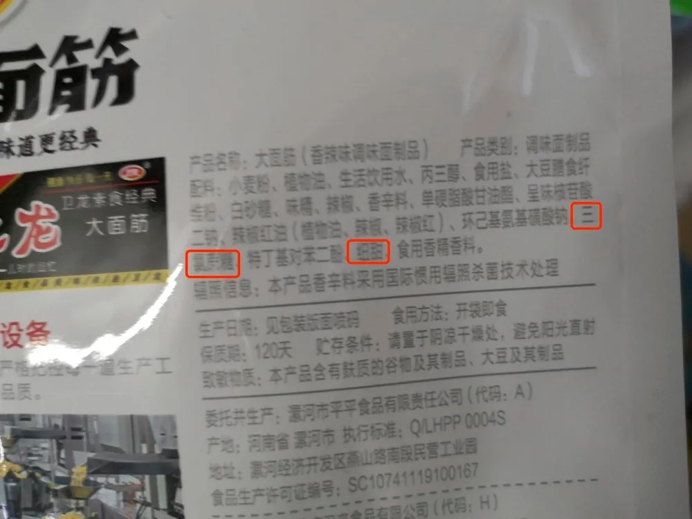 小时候吃得很开心的辣条,里面也有蔗糖素、纽甜……