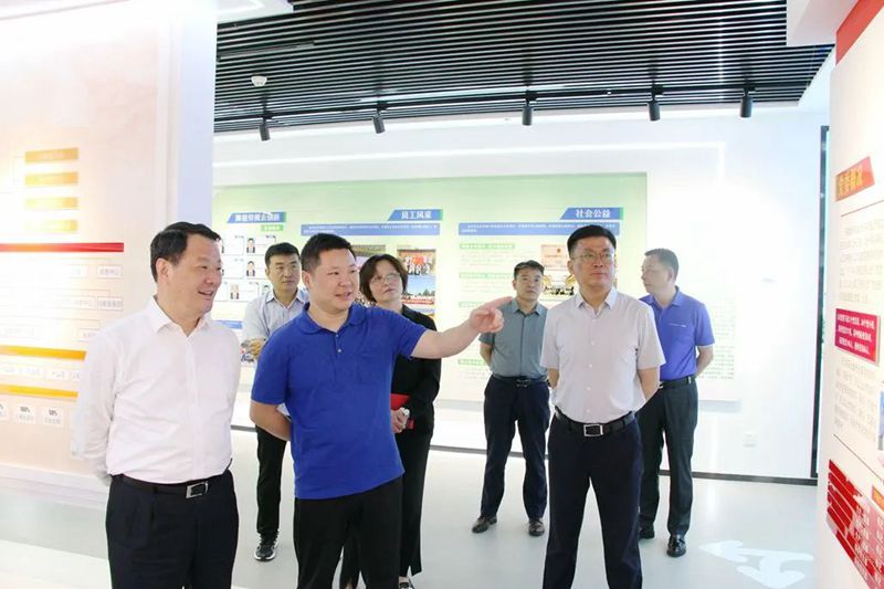 在企业展示厅,董事长杨乐向彭寿一行详细介绍了企业发展历程、技术创新、新能源及产业链打造等情况。