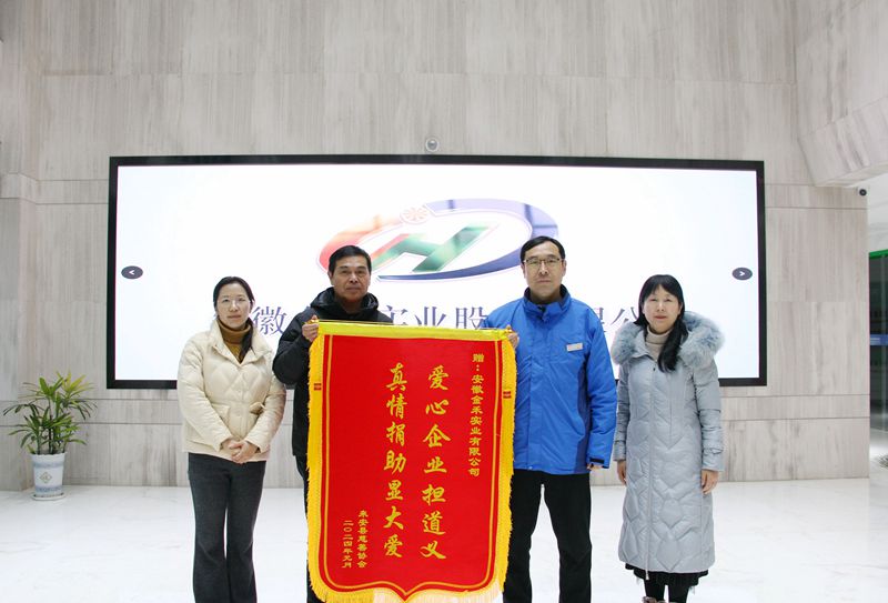 1月18日下午,来安县慈善协会会长岳华,县民政局党组书记、局长韩先秀,党组成员、副局长曹春一行来公司赠送“爱心企业担道义,真情捐助显大爱”锦旗,对公司高层领导关心我县慈善事业发展工作表示感谢。公司工会主席梁方亚代表公司接受锦旗,并与慈善协会岳华会长等进行了座谈交流。