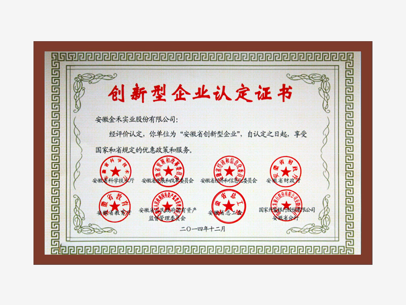 创新型企业认定证书